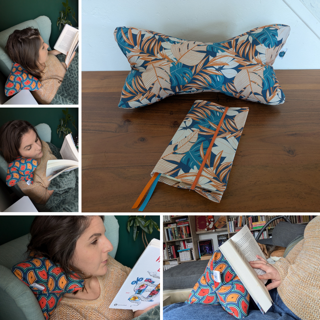 Le protège-livre convient aux formats poche, manga et grands romans, et le coussin vous permet de lire confortablement, allongé·e ou assis·e, sans effort.