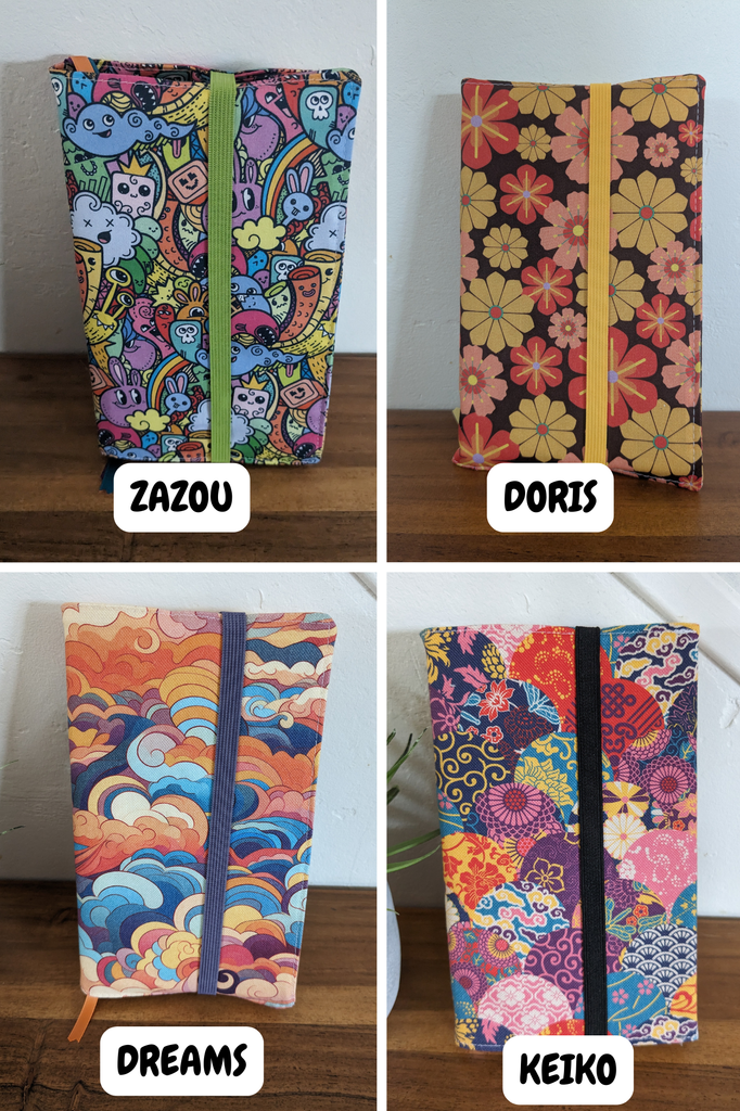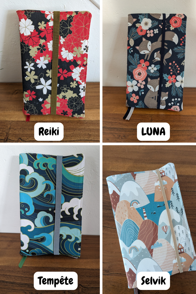 - Vous faites un choix parmi les différents modèles de couvre livres (cousus main, en France, sur du coton BIO certifié GOTS fabriqué en Europe (ouais je me répète mais quand même, j'y tiens))